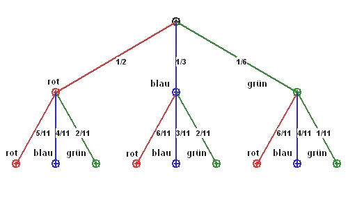 mit den Wahrscheinlichkeiten p(r)=1/2, p(b)=1/3, p(g)=1/6.