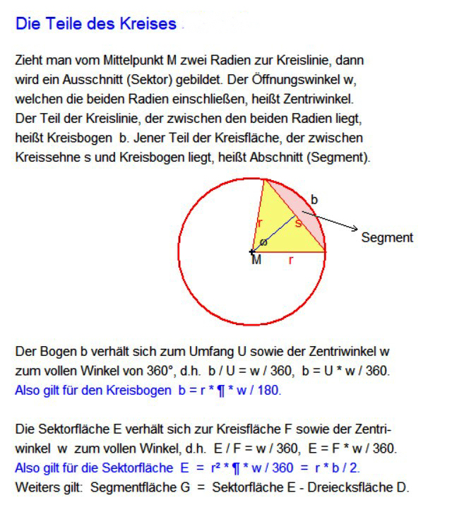 Gegeben: Kreisradius r, Sektorwinkel w (<= 360°).